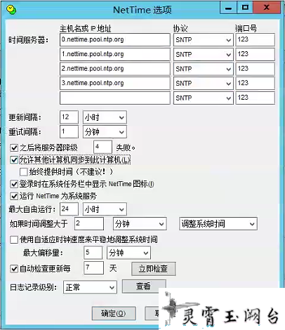 配置NTP客户端很简单,只需要填写NTP服务器地址,不要勾选“允许其他计算机同步到此计算机”选项即可。