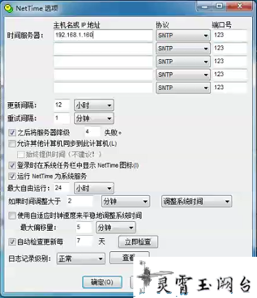 时间服务器填写服务器IP地址,端口不变,必须删除其他外网时间服务器。