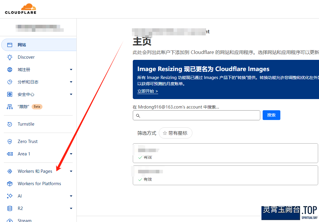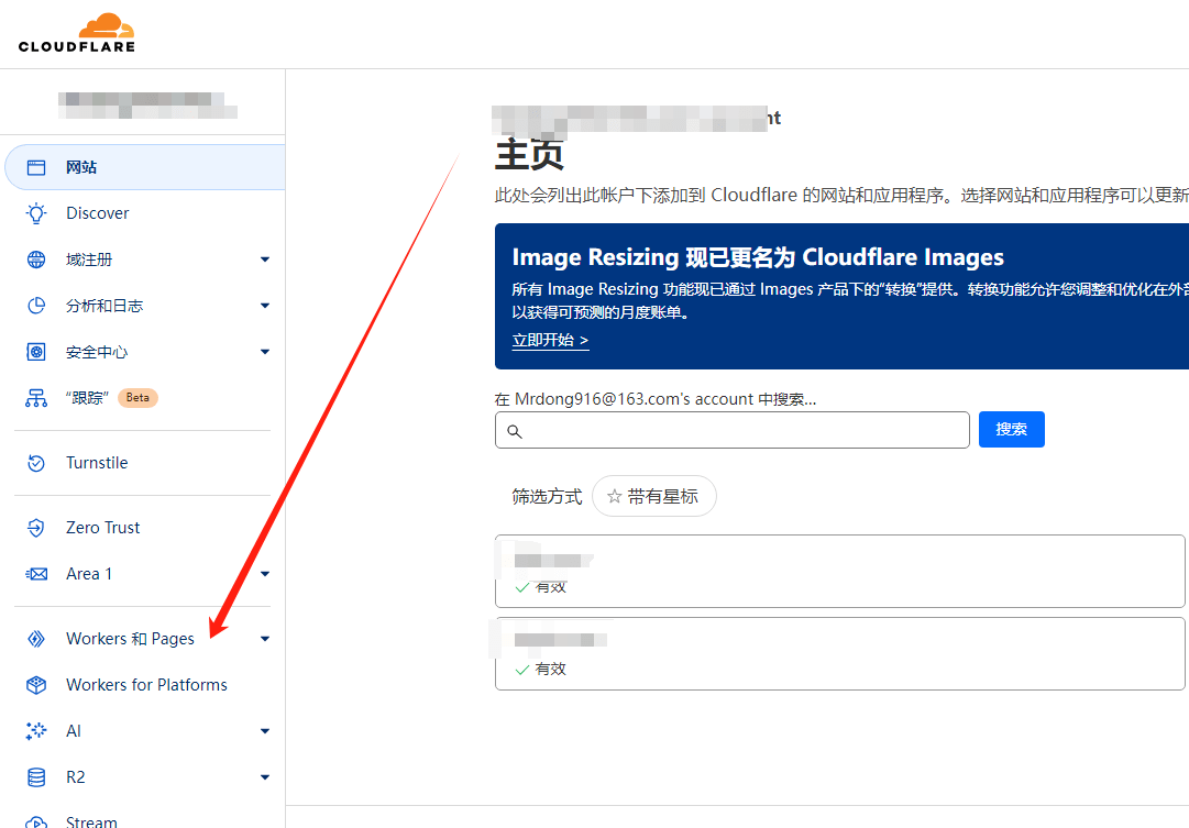 登录Cloudflare官网, 打开控制台左侧的Workers和Pages
