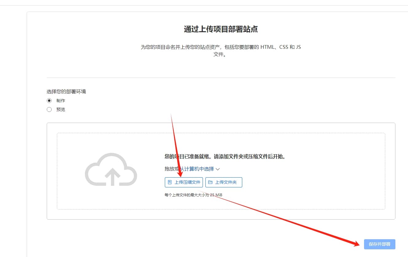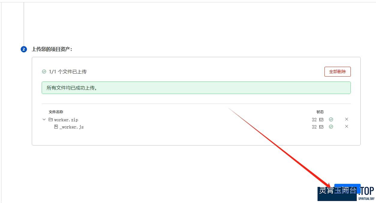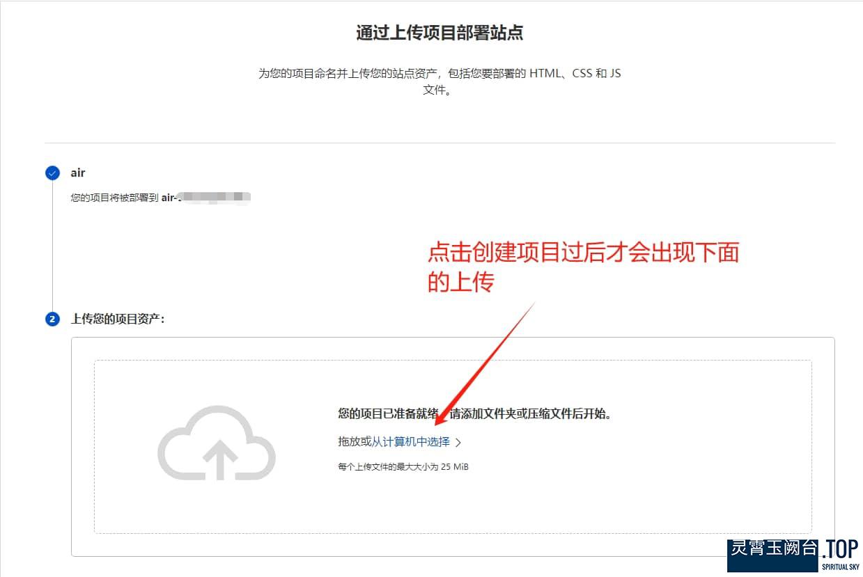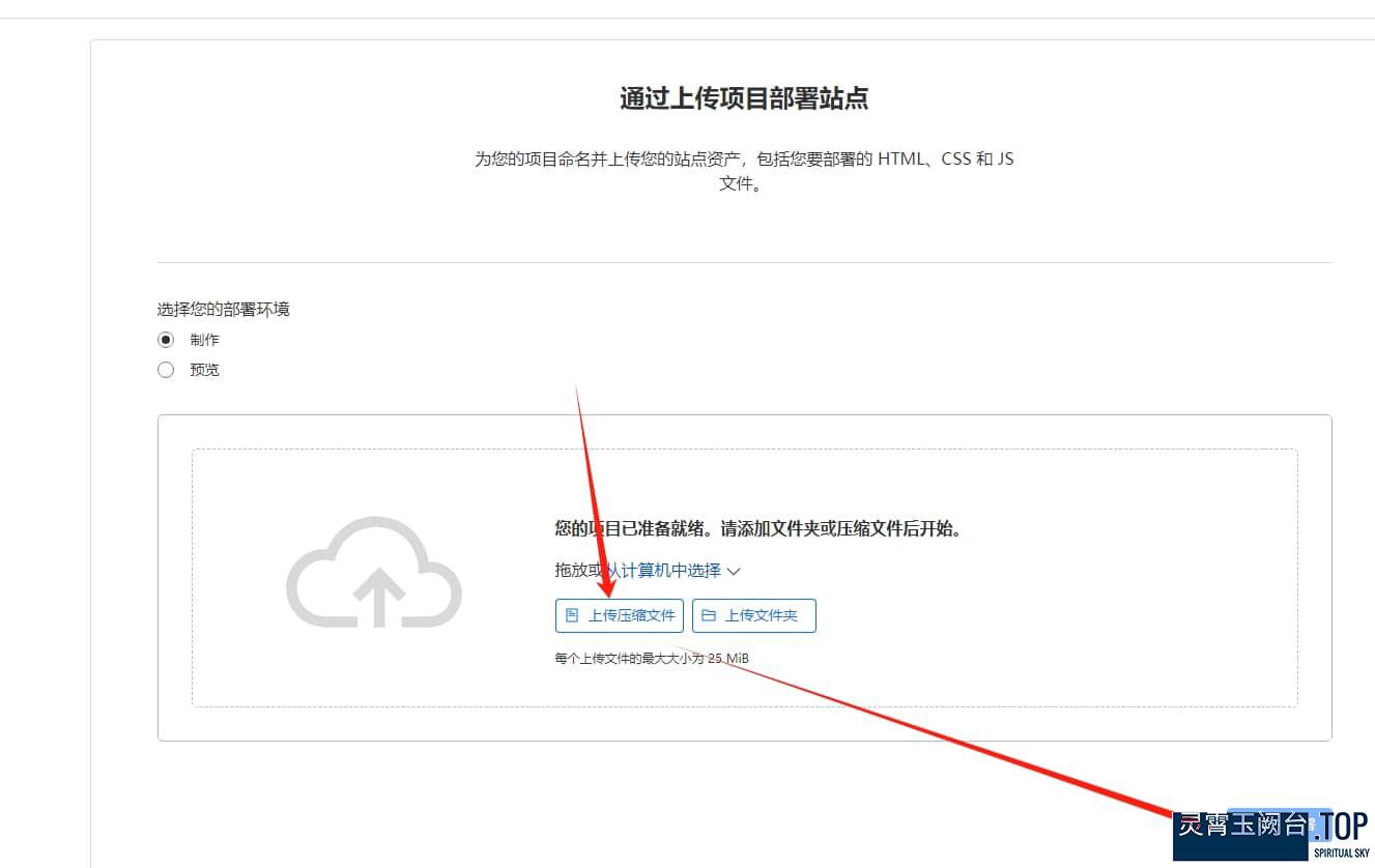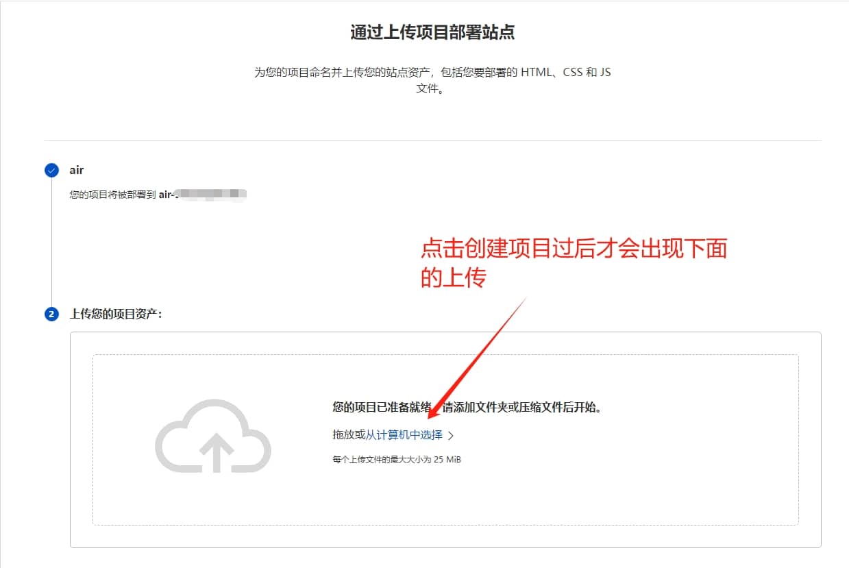 接下来会出现下面的界面,然后点击选择计算机上的文件,选择上传压缩包,上传你之前下载好的worker.zip文件,最后点击部署站点