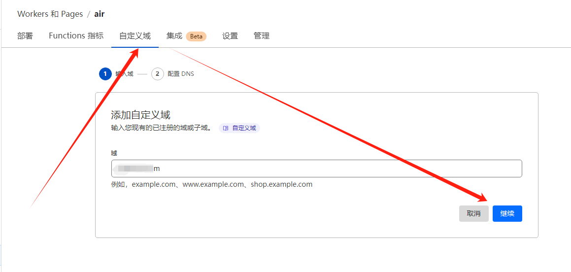 如果你需要自定义域名,需要新增一个CNAME的解析到你生成的访问地址的那个域名