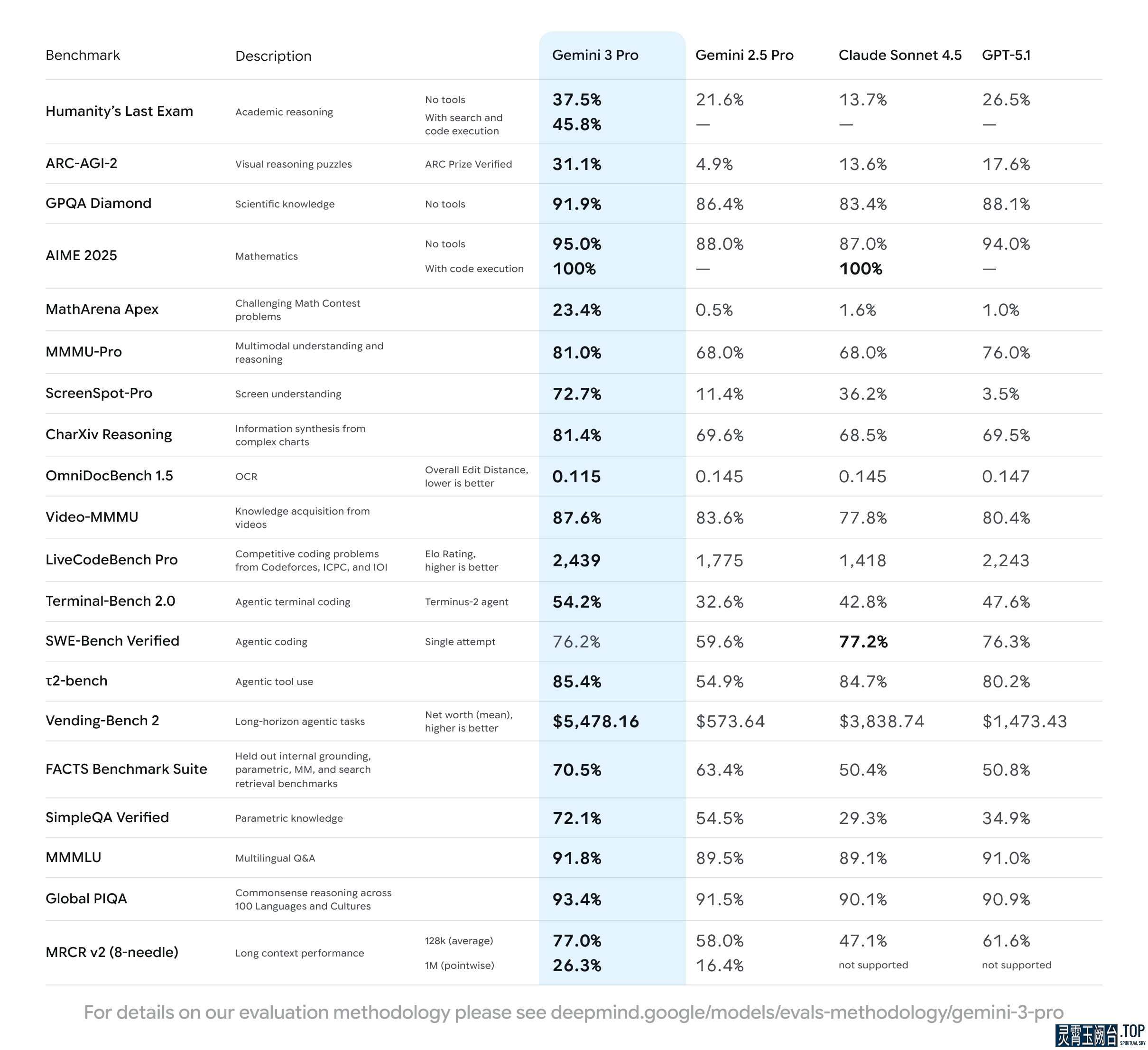 具体而言,Gemini 3 Pro 在各项基准测试中表现如何?