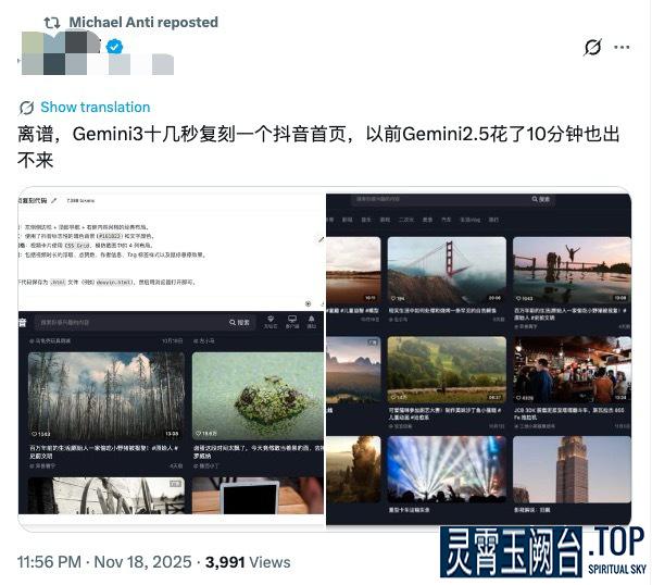 还有用户称: “多模态响应速度快了很多,尤其是视频理解像那么回事了。代码能力回来了,谷歌终于不像去年那么迷茫。”