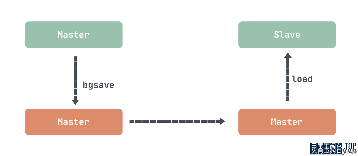 它首先需要在主库上进行一次 bgsave 将当前内存的数据全部快照到磁盘文件中,然后再将快照文件的内容全部传送到从节点。从节点将快照文件接受完毕后,立即执行一次全量加载,加载之前先要将当前内存的数据清空。加载完毕后通知主节点继续进行增量同步。