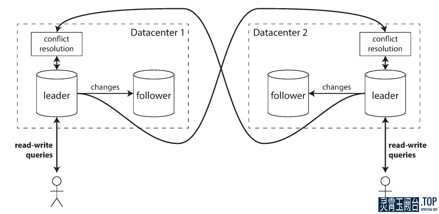 多主配置也有一个很大的缺点:两个不同的数据中心可能会同时修改相同的数据,写冲突是必须解决的。