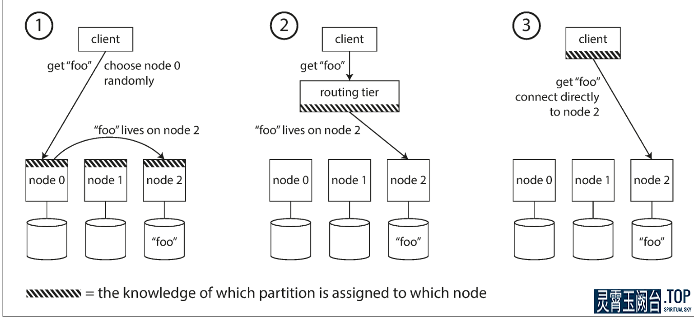最后要说的就是路由了,客户端怎么知道我要查的数据在哪个分区。一般来说有三种方式: