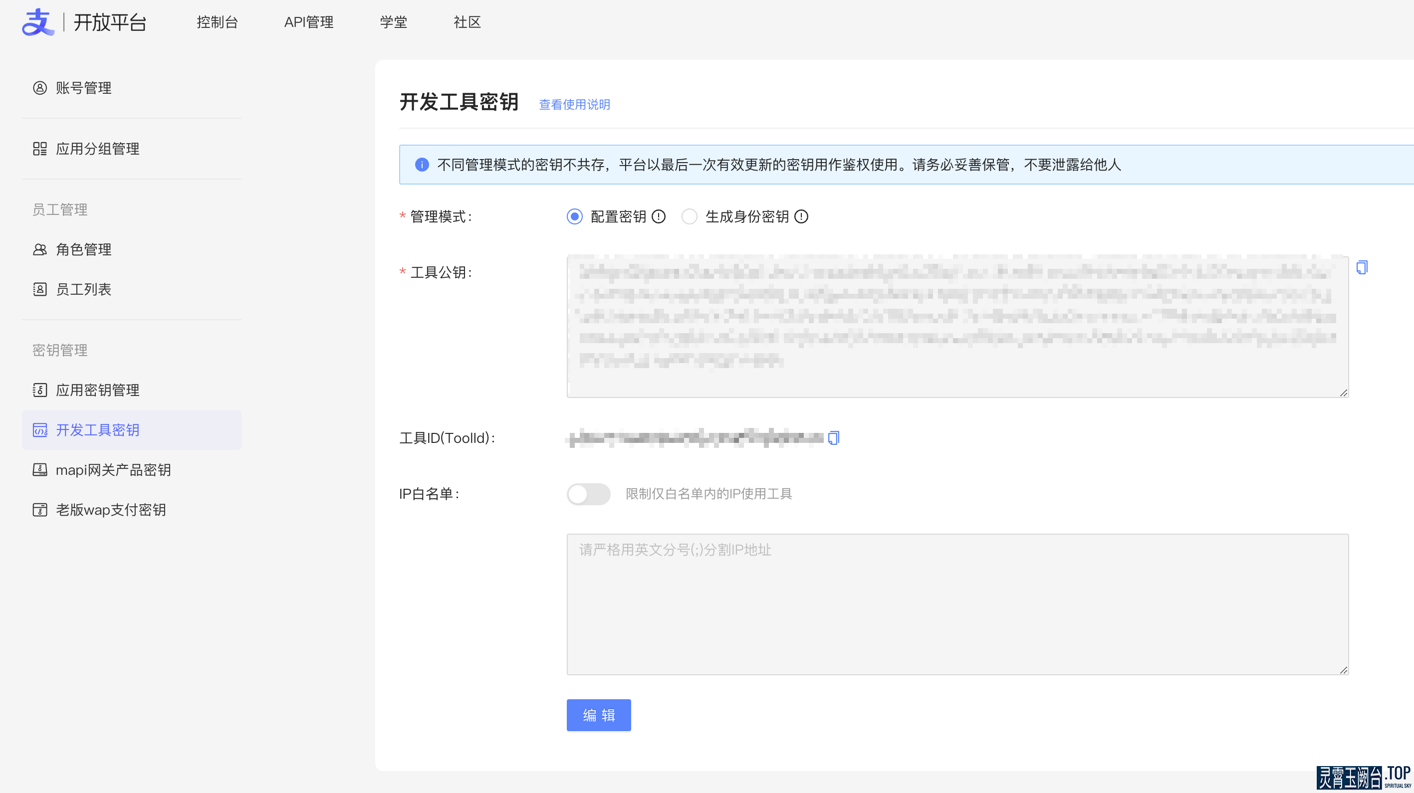 密钥及IP白名单配置